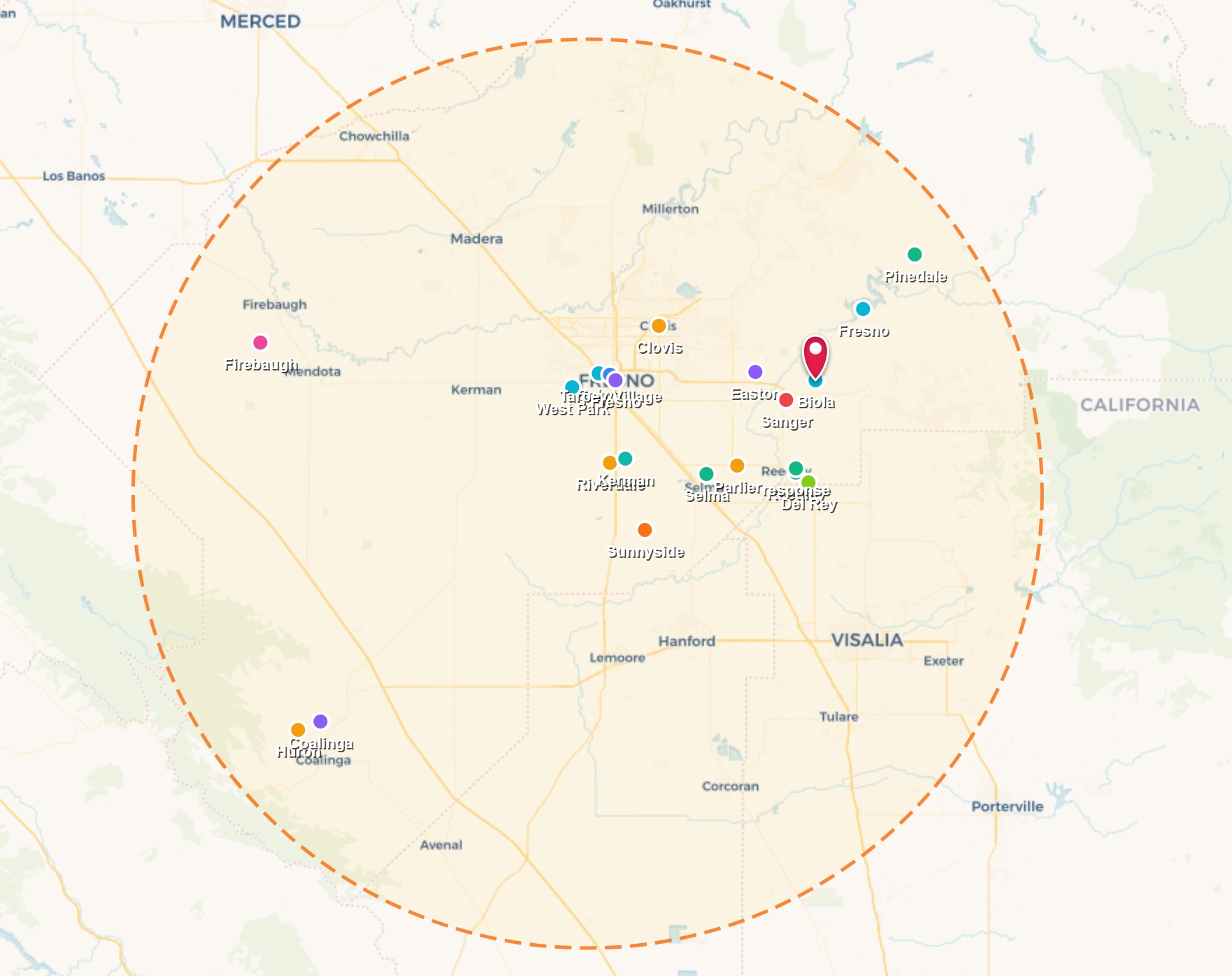 Biola, CA, and all of Fresno County